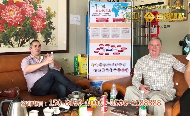 参观完合明的产业规模和具体生产流程后,外商考察团与合明总经理展开亲切的会谈,进一步了解合明模板的实力,加深深层合作意向。